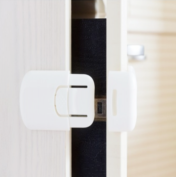 Cierre de seguridad infantil para los cajones en esquina, cómodas, mesitas de noche...Se instala con el adhesivo que incorpora. Se ha diseñado con un doble sistema de seguridad para evitar que tu peque pueda abrirlo.
